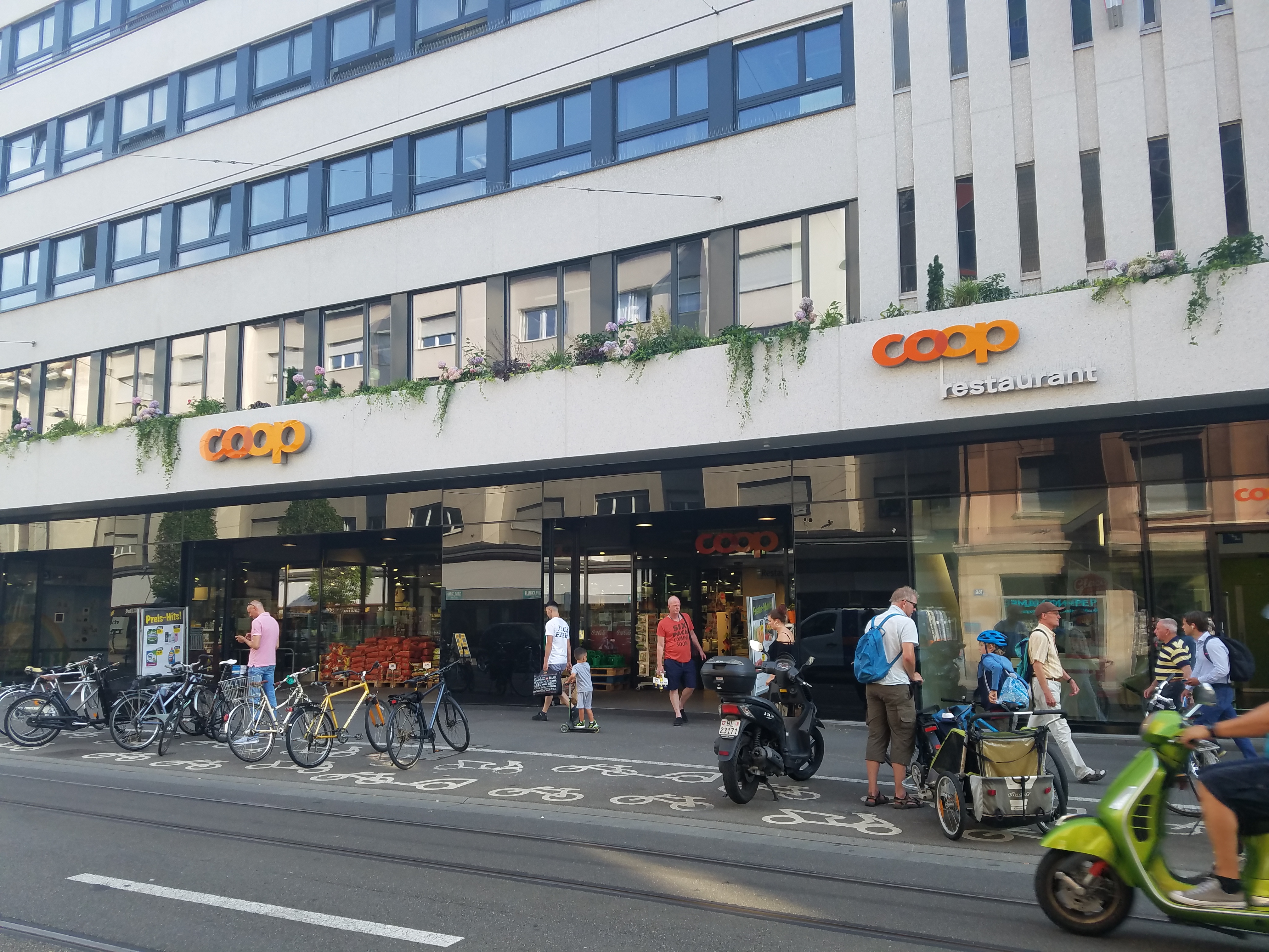 Both Coop and Migros are almost comically ubiquitous in Basel. Beyond our local (which also features a deeply mediocre, noticeably expensive buffet restaurant my kids fell in love with immediately—they’ve taken me there twice so far to watch them eat half a pretzel sandwich and a forkful of salad, and I have yet to spend less than 25 francs, but at least they gave them a free little stuffed toucan), there’s a larger Coop three blocks down the street, just before the train station.