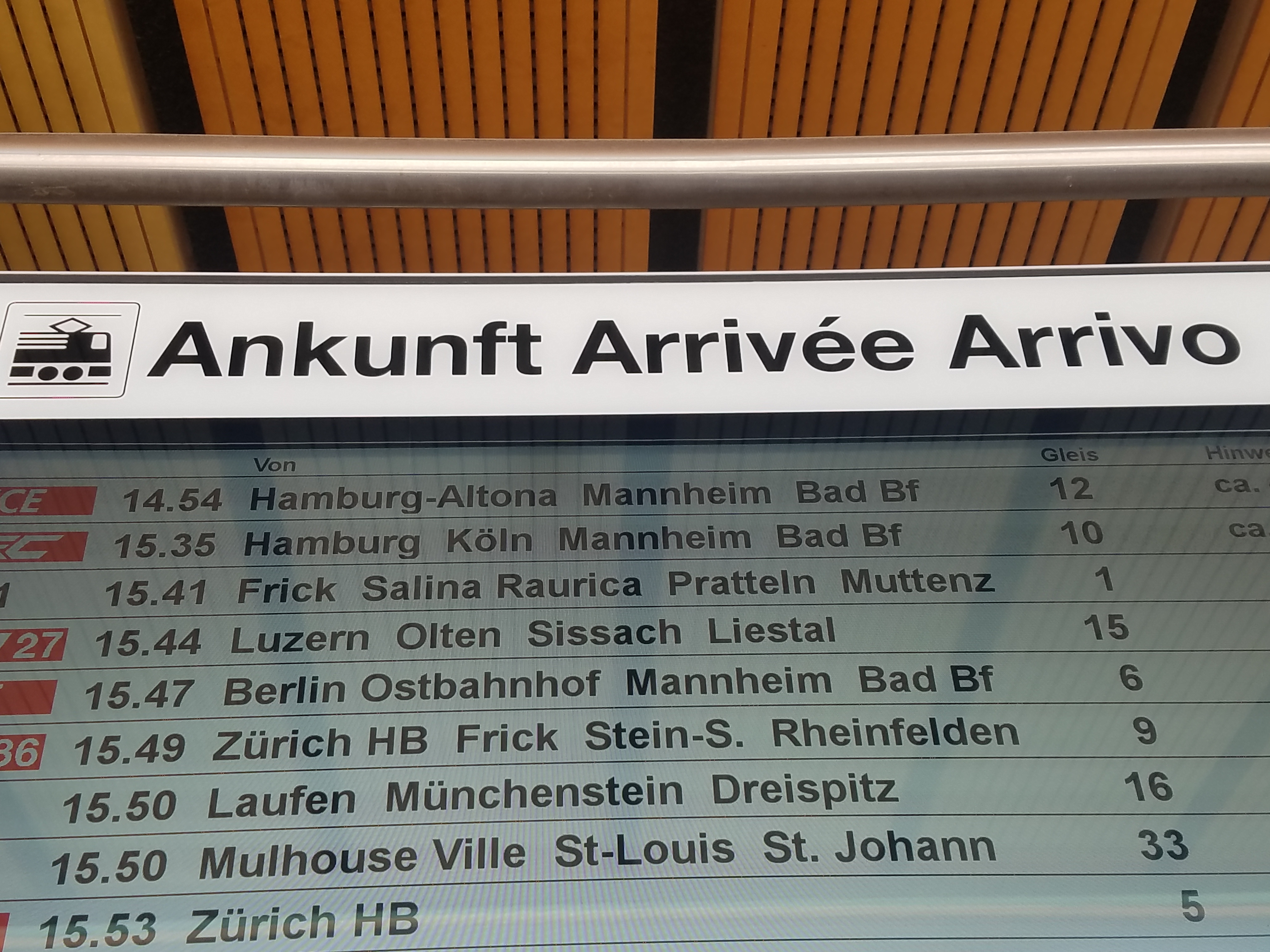 We’ve met native French speakers who’ve been refused permission to fill out German forms in French, even though French enjoys pretty nationwide visibility, appearing alongside German (and sometimes Italian too, albeit less often) on most labels and packaging, and some public signs. Announcements on our local trams are in German only, but switch into French when we arrive at the train station where the French trains stop (they speak English, too, but only at the stop for the massive convention center). And when you talk to a local government official (so far we’ve interacted just with the foreigner processing teams at the Bevölkerungsdienste und Migration unit of the Justiz- und Sicherheitsdepartement des Kantons Basel-Stadt—doesn’t it sound welcoming?), it’s safe to expect her to sigh and switch into English with you, but she would clearly rather not.
