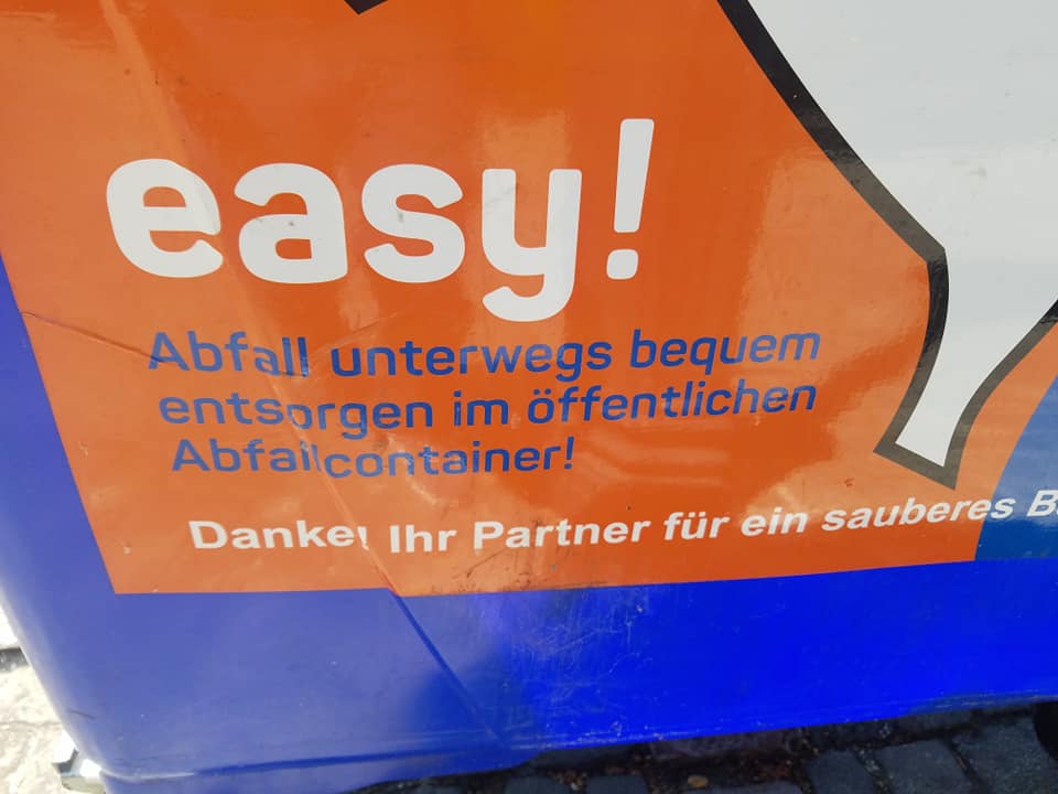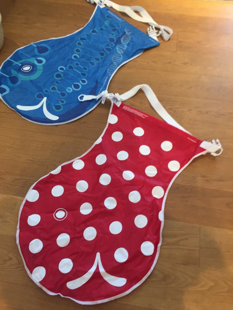 My Wickelfisch at front, Jessica’s at rear. I had the choice of red or red with spots. I got mine at a pharmacy, but you can also find them at supermarkets, the train station, kiosks, riverside pop-up stands, bars, ice cream stands, and restaurants, among other outlets. Jessica got hers free from work; you can tell by the subtle double helix decorations.