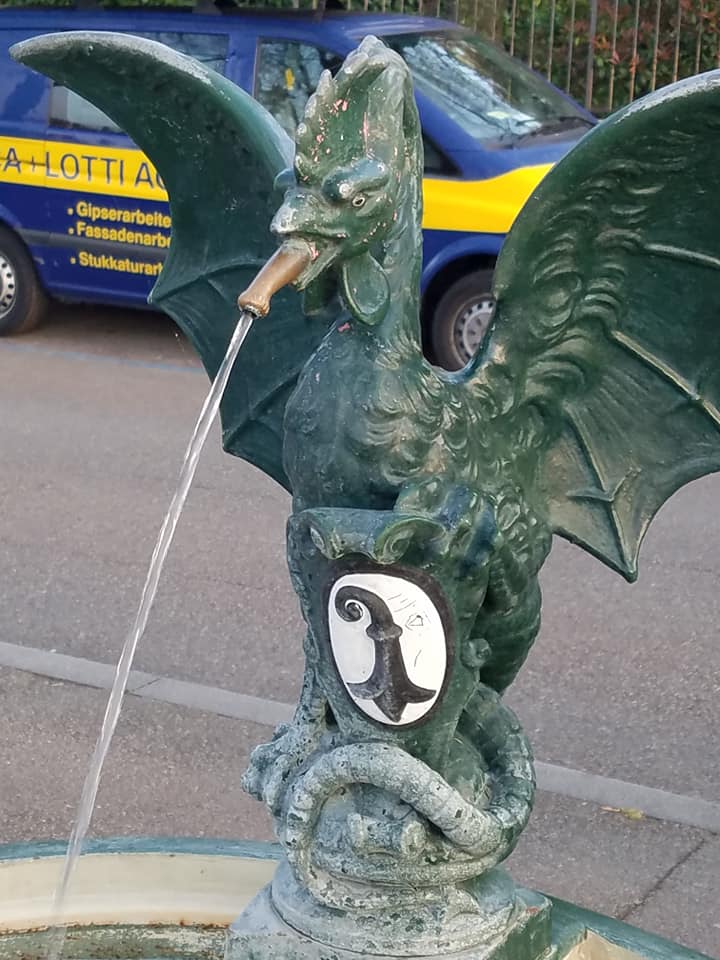Coming ashore from a Rheinschwimm is theoretically possible almost anywhere, but most people get in and out near one of the city’s four main bridges, which serve as sort of mile markers for the length of various trips downstream (“We went from Schwarzwaldbrücke all the way down to Dreirosenbrücke, it was great!”) The riverbanks adjacent to all of the central bridges are built up with boat landings with staircases, sun-dappled Rhineside promenades, benches, fountains of pure drinking water shaped like Basel’s emblematic Basilisk (known to my kids as the Chicken Dragon, not without reason), and in the summer months, Buvettes.