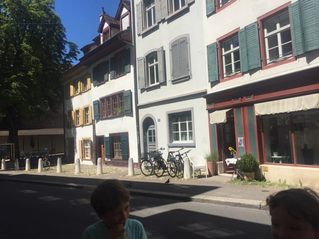 Her: Hey, Basel’s cute! It looks like Swiss Disneyland. Swissneyland. (She was right about that–the little medieval old town is movie-set charming from many angles.)