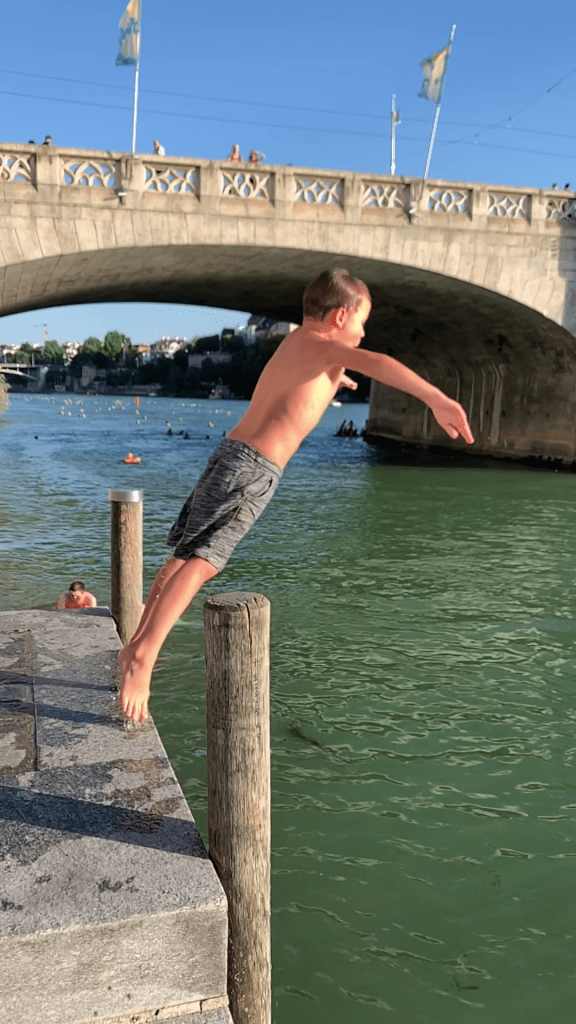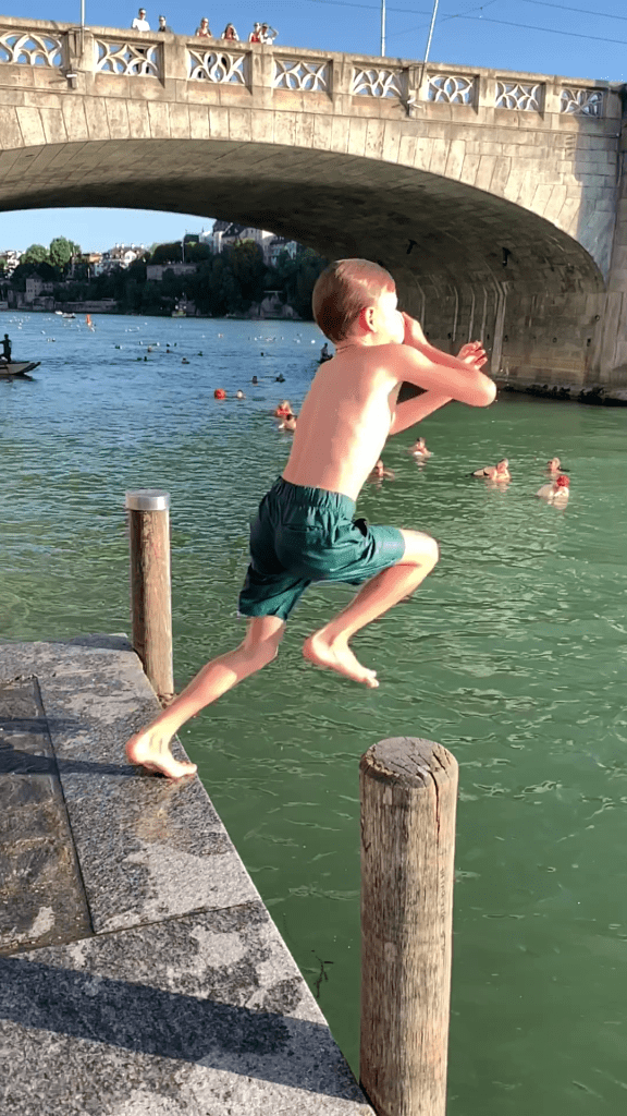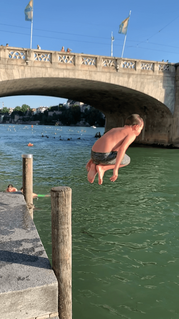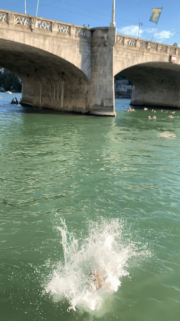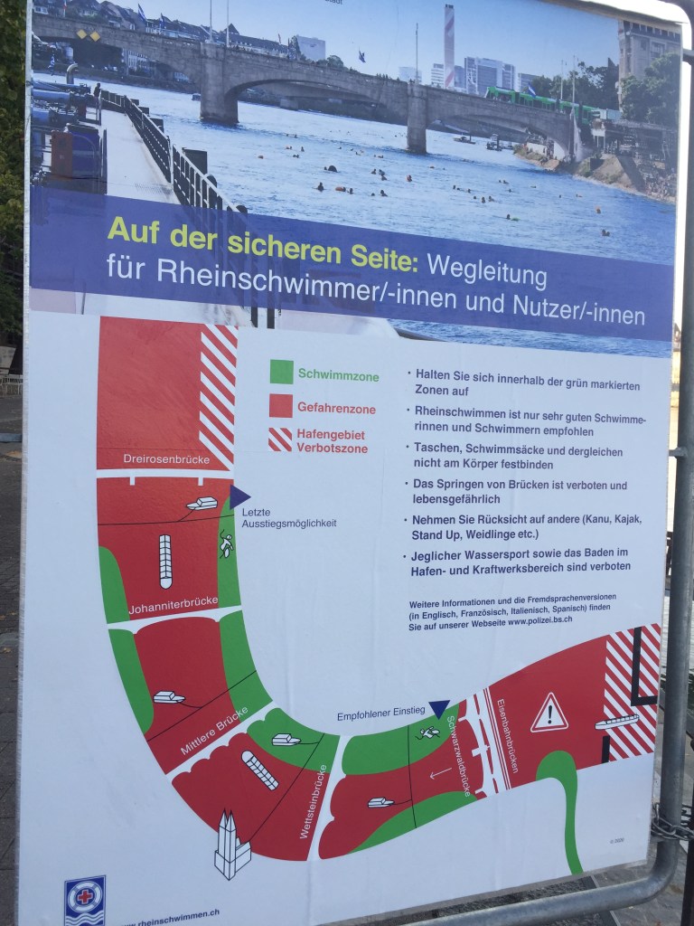 What we do have, however, is the Rhine, and Baslers are deeply dedicated to taking advantage of it in the summer months, which turn parts of our little inland city into something resembling a resort. Among Basel’s most beloved summer traditions is the storied Rheinschwimm, “Rhine Swim.” There are traditional days every year when whole workplaces, including my wife’s 7000-plus-employee multinational HQ, encourage their people to Rheinschwimm home from work after a long day of crunching numbers or manufacturing antibodies.