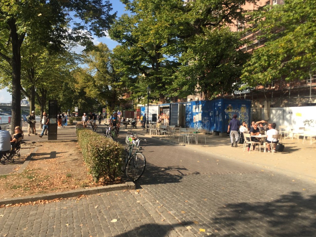 Our own street, which is a busy commercial strip but fewer than four full blocks long from the convention center at one end to the Rhine at the other, is home to more than a dozen venues that maintain tables outside. A lot of them are, perhaps predictably, bakeries and coffee shops; there are two just on our block that face off on opposite sides of the street, and a Starbucks has a similar showdown with a Dunkin’ Donuts just a little further down by a mall. At least one is a bar, one is a McDonald’s, and at least four are kebab shops, Germanic Europe’s favorite cheap, Turkish-inspired fast food joints (more about one of which below).